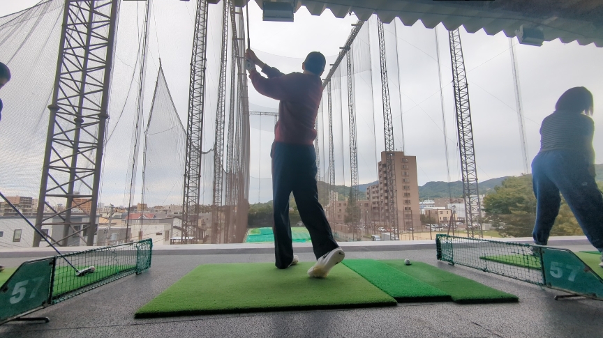 皆さん、こんにちは!イチです。前回、駆け込みでレッスンを受けて臨んだ早朝ラウンドでは、なんとかアイアンマンとして戦ってきましたが、やっぱり大きなミスは右手首をこねてしまう(返してしまう)ことが原因だと痛感しました。狙った方向に打てたと思ったら、次の瞬間には手首を使ってしまい、ボールが変な方向に飛んでいく…。この長年の悪い癖をどうにかしないと、いつまでたっても安定しない!という強い決意で今日のレッスンに臨みました。地道な練習ですが、この宿敵を乗り越えたいと思います!