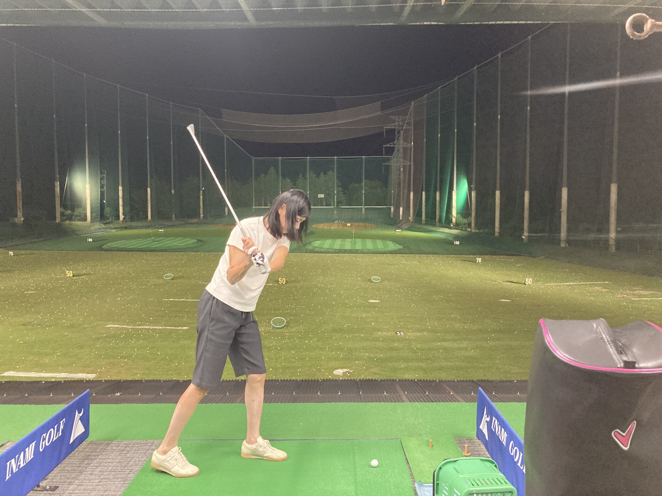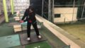 今回もピッチングで4-8、3-9の復習をした後、7番アイアンでの練習に入りました。まだ慣れていないこともあり、ボールを線の上に置き、線に沿ってクラブが降りてくるように練習しました。クラブを振った後、体が持って行かれてしまう為、右足を後ろに引き、左足に体重を持たせた格好でクラブを振り下ろす事により、体のブレを無くすといった練習をしました。最初は違和感がありましたが、何回も練習すると身体が邪魔をしない為、真っ直ぐに飛ばせれるようになりました。