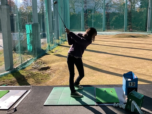 実技では、これまで練習してきたアプローチショットとフルショットのおさらいを中心に行いました。同じ動きを繰り返し積み重ねることで、感覚が少しずつ整ってくるのを感じます。今回はさらに距離感を掴むため、コーチに目標となるヤード数を指定してもらい、その目印を狙って打つ練習にも挑戦しました。単に打つだけではなく「どこに落とすか」を意識するだけで、ショットへの集中度が全く違い、とても良い練習になりました。
