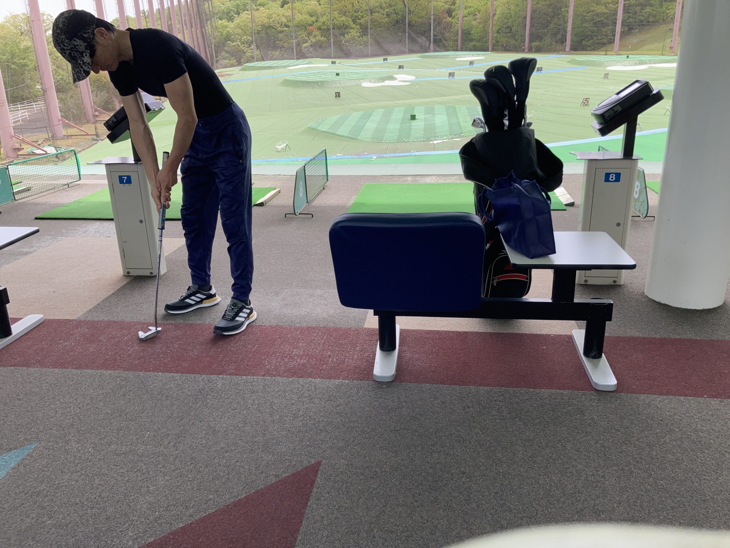 複数の形状のパター持参して見極めようとした期待とは裏腹に、多田コーチからはなんでも良いよとのことでした。ピンはちょっと難しいけどマレット型ならと。